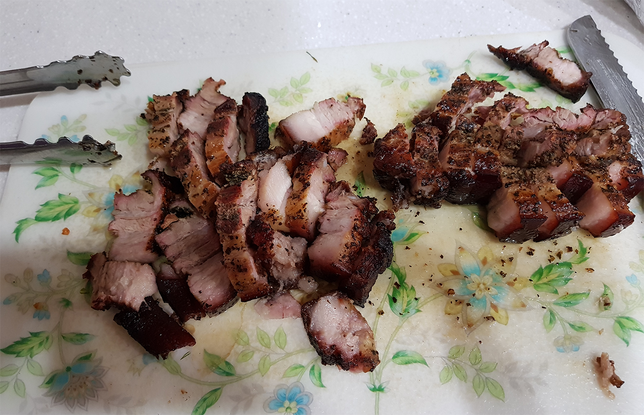 다음번 훈제는 하루 염지하는 과정을 더 거쳐봐야지. 간단한 듯 하면서도 오묘하네..