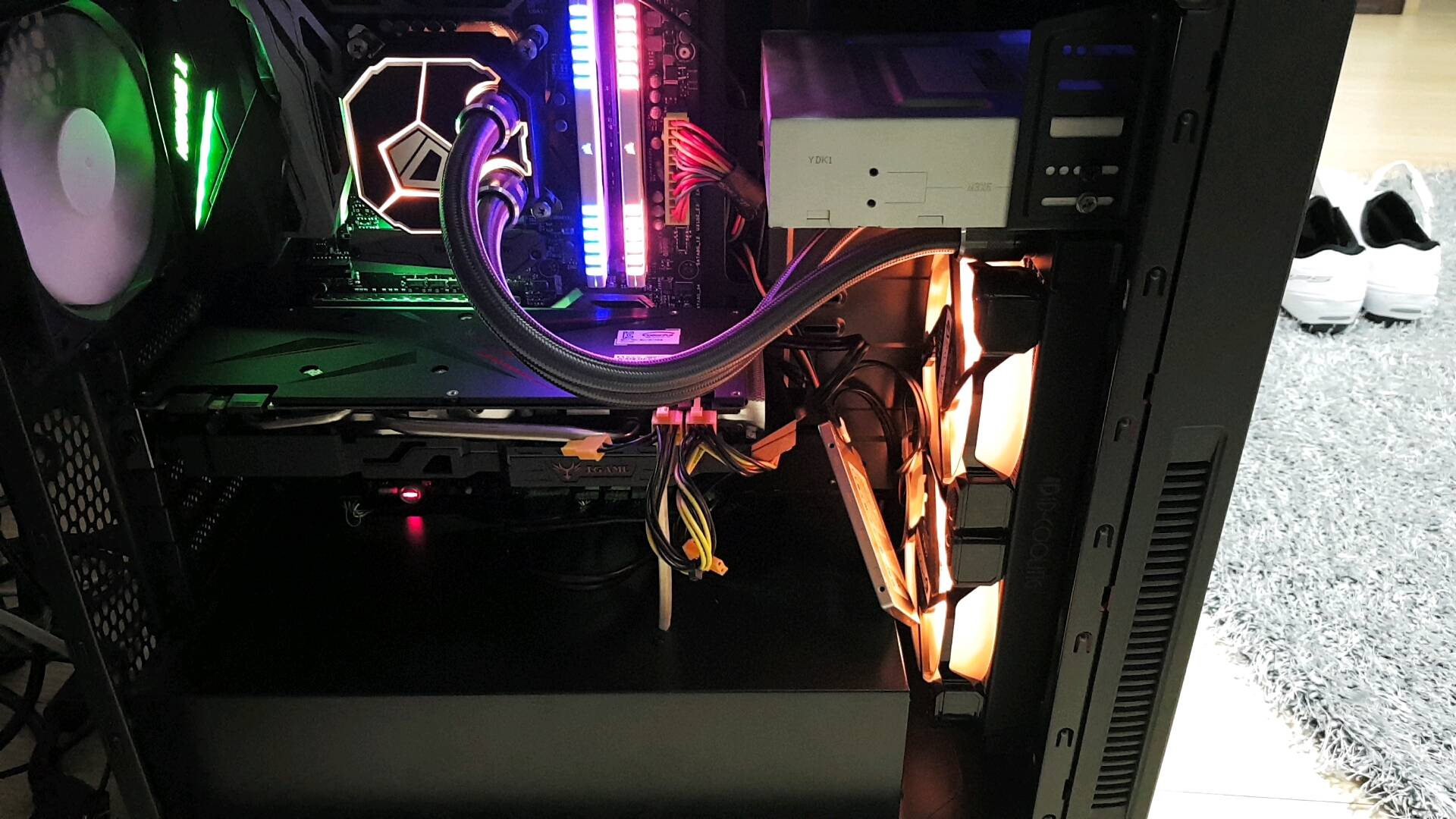 케이스가 작아서 상단에 라디 안달리더라 그래서 전면 팬뜯고 거기 라디달아서 더 귀찮앗다