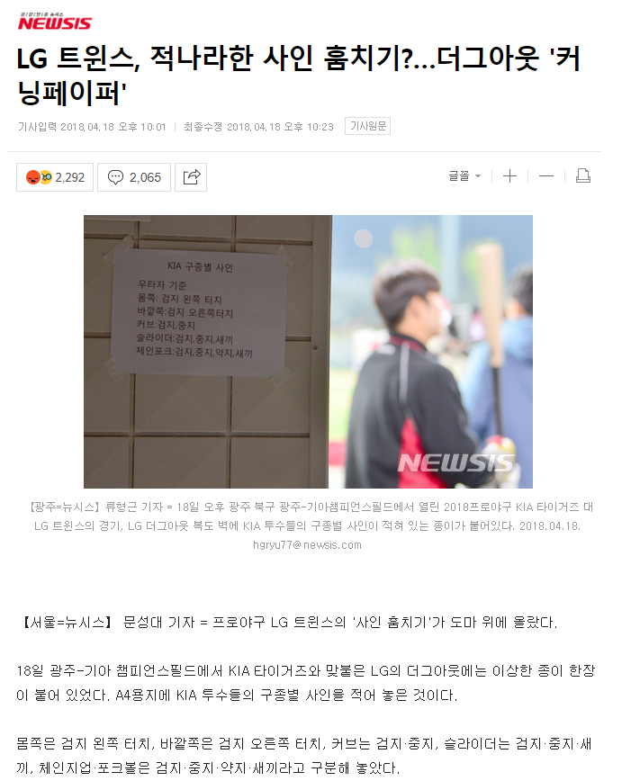 그러고보니 최훈이 싸인 훔친다고 만화로 깐팀만 두개인데 정작 크보 최초 싸인 훔친 증거가 나온 팀은 지네 팀이니 뭐라 할지 궁금하다