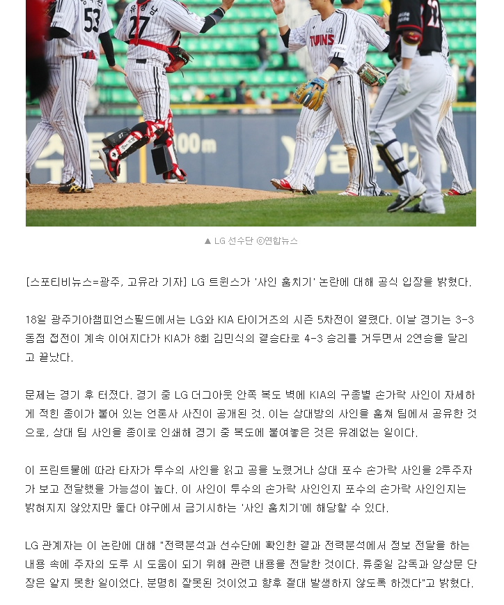 한편, LG는 기아를 상대로 현재 2연패중이라고한다.