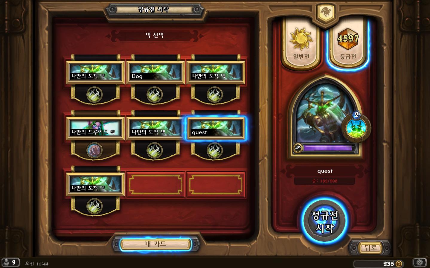 위에잇는덱들로만 찍엇다 25급부터 매우긴여정