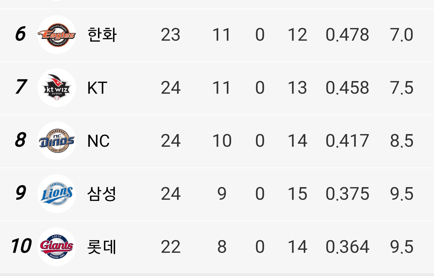 사실 3위 꼴아가 6.5게임 차이라 거의 차이 없긴 함