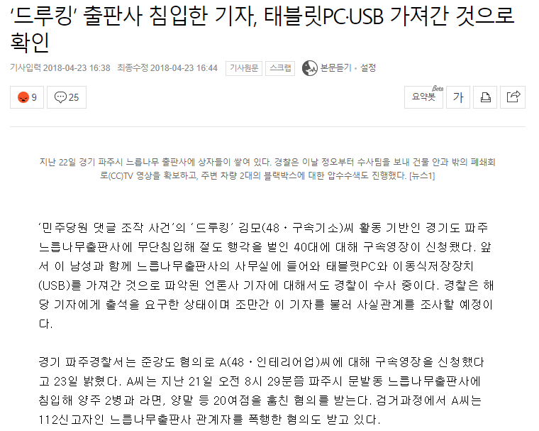 출판사 압수수색을 3월에 했는데 4월에 도둑이 왔다가니까usb가 하나 추가로 발견되고 도둑은 usb랑 태블릿을 훔쳤다고 하는중 ㅋㅋㅋㅋㅋㅋ