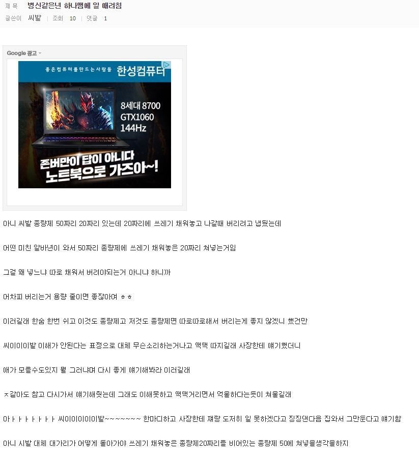 아니지 아름다운 여알바였음 저새기도 저렇게 화 안내겟지
