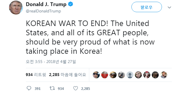 나 오늘 일하는데 평소 토람푸 조아하던 사장이 막 신나서 나한테 와가지고 좋겠다고 이제 북한이랑 남한 허그하는거냐고 그러더라