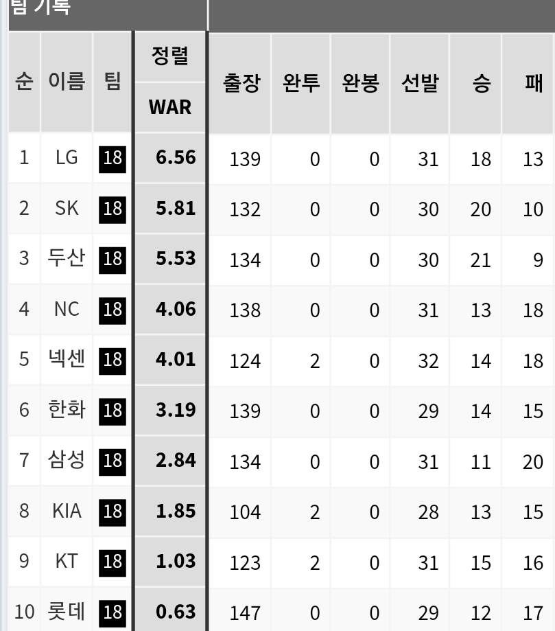 심지어 팀타율과 ERA는 둘다 1위 ㅊㅋㅊㅋ