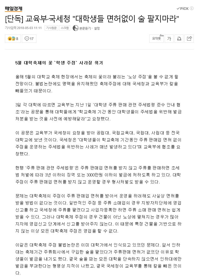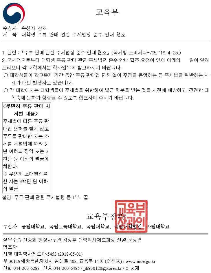 이제 대학 축제에서 술팔지 말라고함 ㅋㅋㅋ