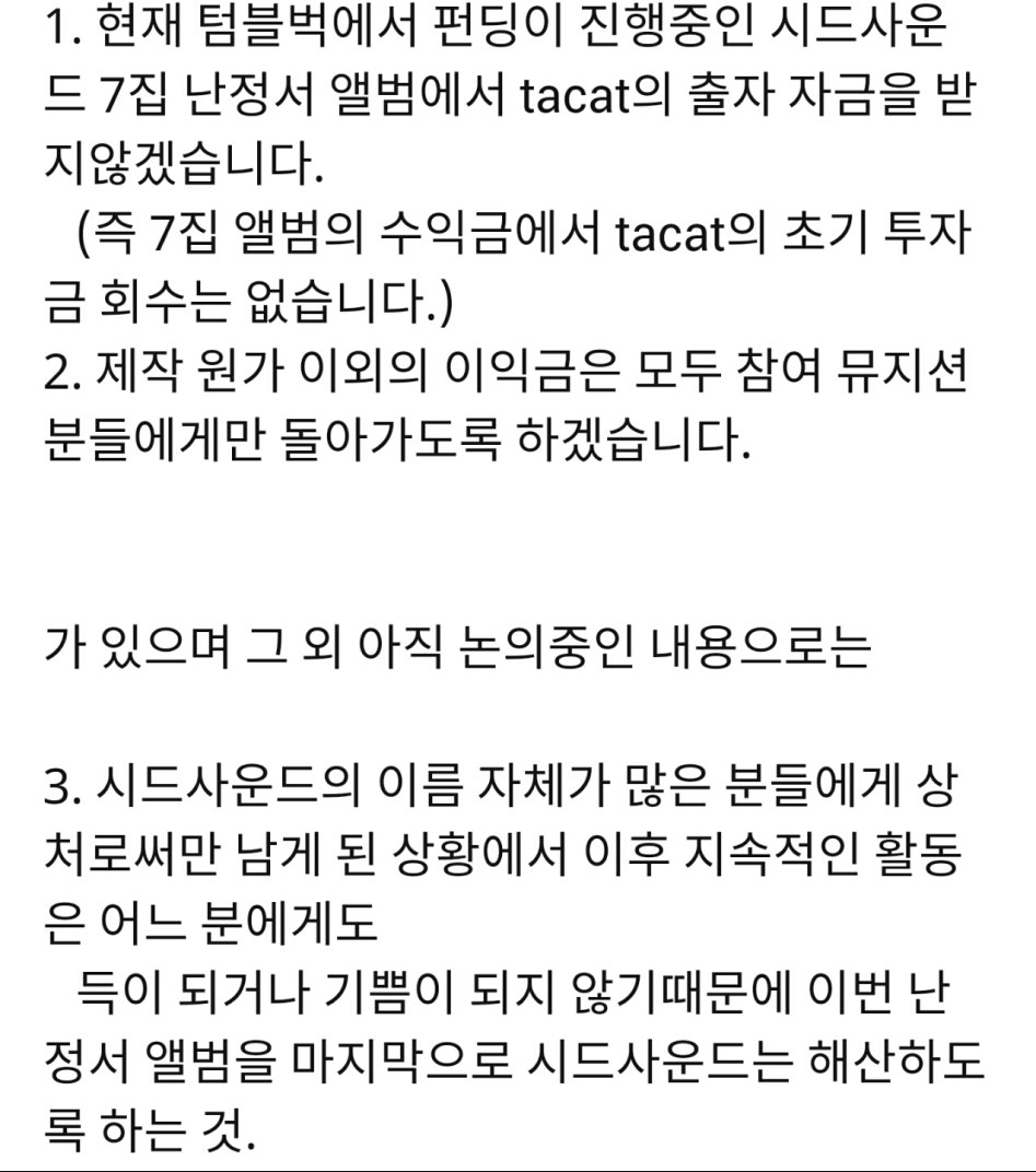 시드-사운드는 복귀 선언과 같이 7집 후원을 받았으나