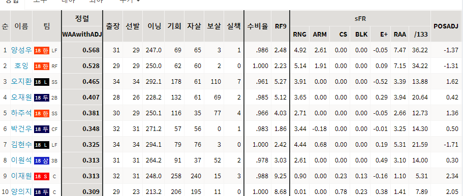 수비 1위가 양성우네