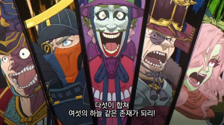 좌측부터 나이트윙, 알프레도, 뱃맨, 캣우먼, 로빈