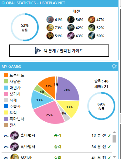 근데69%승률이라 느리게등반하는느낌은아님 한 타이밍따라 흑흑전은 갈리고 린먼저해도 무조건 이기는건 아님 흑마덱 유형파악후 동일덱이면 먼저 배째면 이김