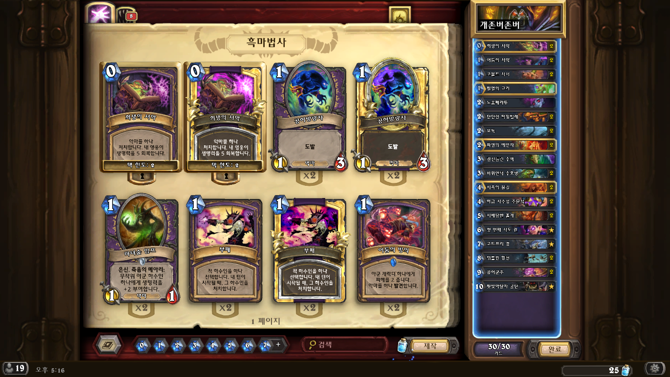 산거흑마덱 상대론 4턴 칼산거의식 종말이를 잘 써야뎀 머 다른덱들은 고만고만 흑마돌리듯이돌리면끝