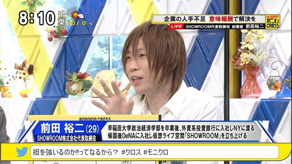 쇼룸 이라고 일본의 인터넷 개인방송 서비스, 요컨대 한국의 아프리카 tv 같은 곳의 사장인 마에다 유우지가 그 상대.
