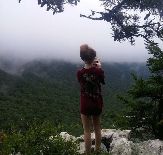 버너는 절벽 근처에서 풍경을 감상하며 사진을 찍고 있던 여자친구의 뒷모습을 촬영했습니다.