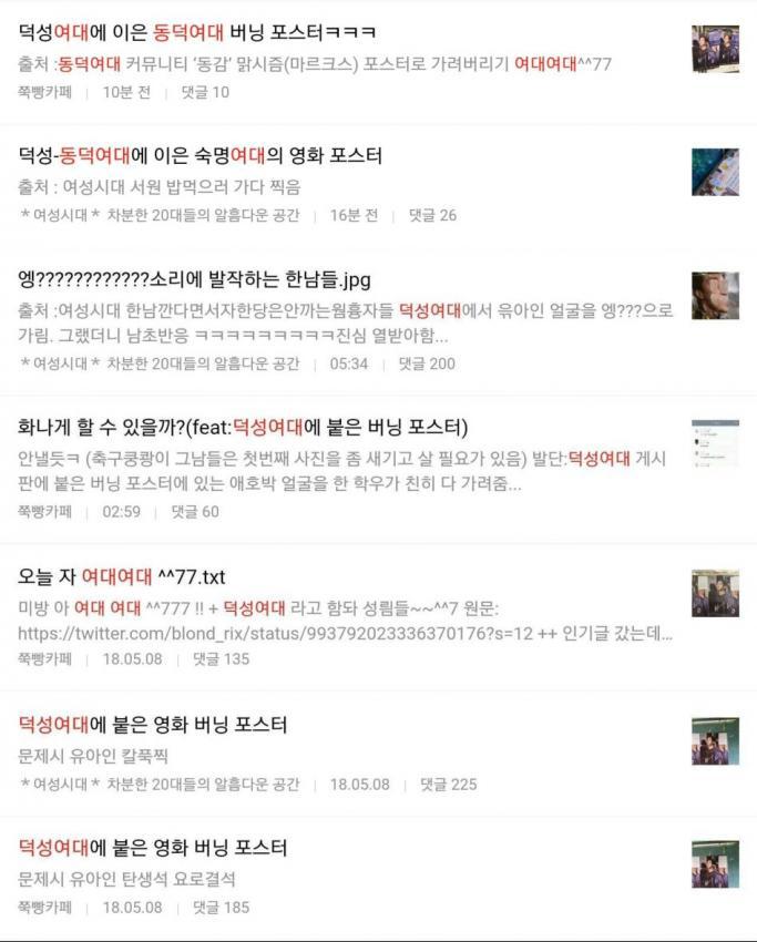 덕성여대를 시작으로동덕여대 - 숙명여대 - 서울여대로 확산중