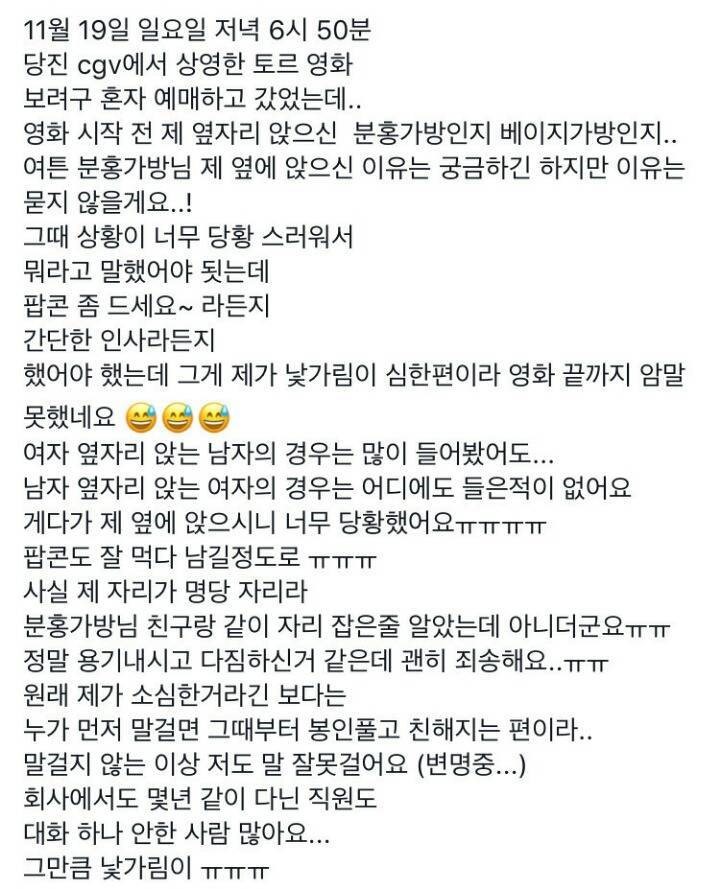 여자 입장에선 자기가 예매한 자리에서 그냥 영화를 본 것일뿐