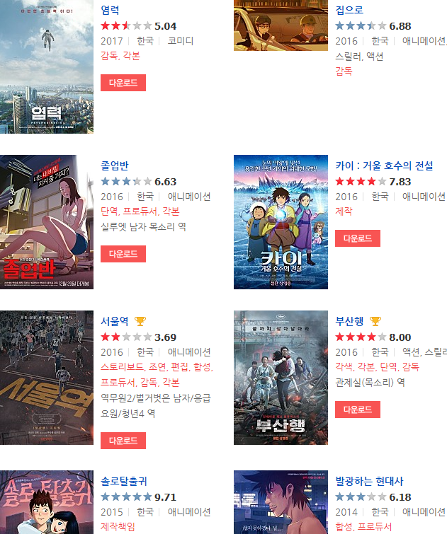 부산행 찍은 연상호 감독 필모 보니 애니들이 많더라고. (각본 or 프로듀서 or 감독)