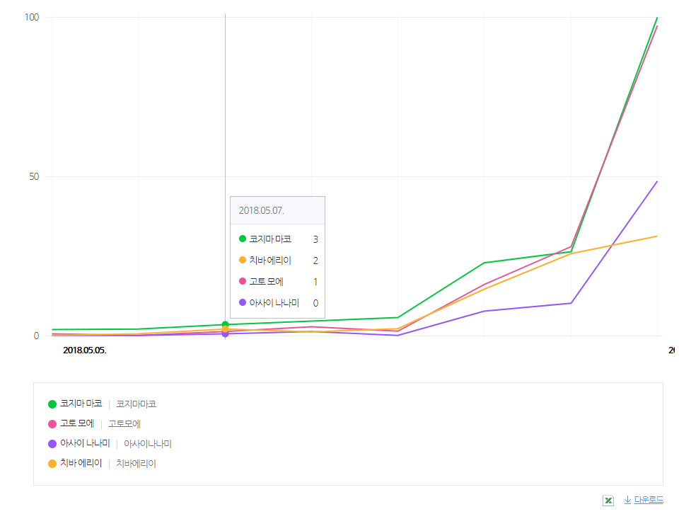 하지만 사쿠라까지 집어넣은 트렌드 그래프를 보니