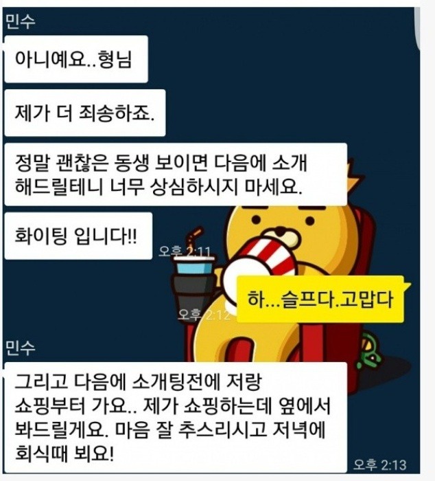 그래도 남자가 성격 좋나보네 다음에 또 해주고 문제보완해줄라고 쇼핑도 같이 가자할 정도로 동생이 따르다니