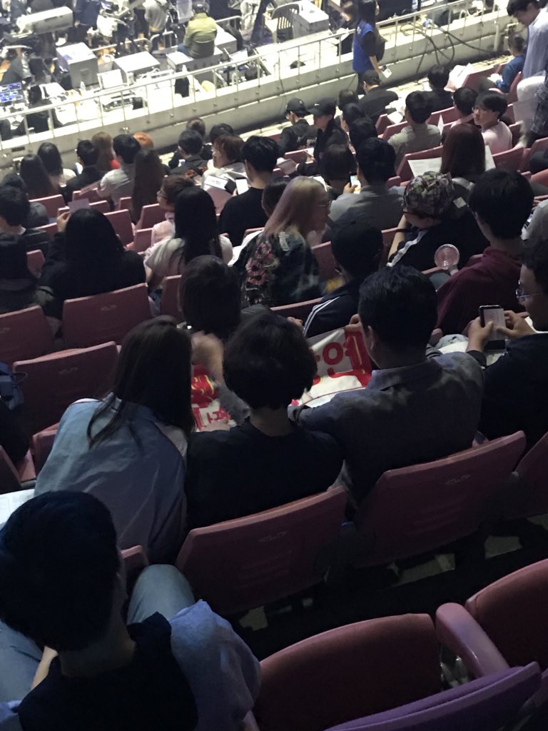 관객석에서 슬로건을 보고 있는 정연이 부모님과 공승연