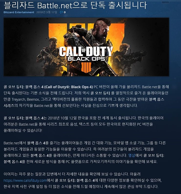 거기다 갓글화는 환영인데 스팀을 버리고 블리자드 배틀넷 단독 출시?