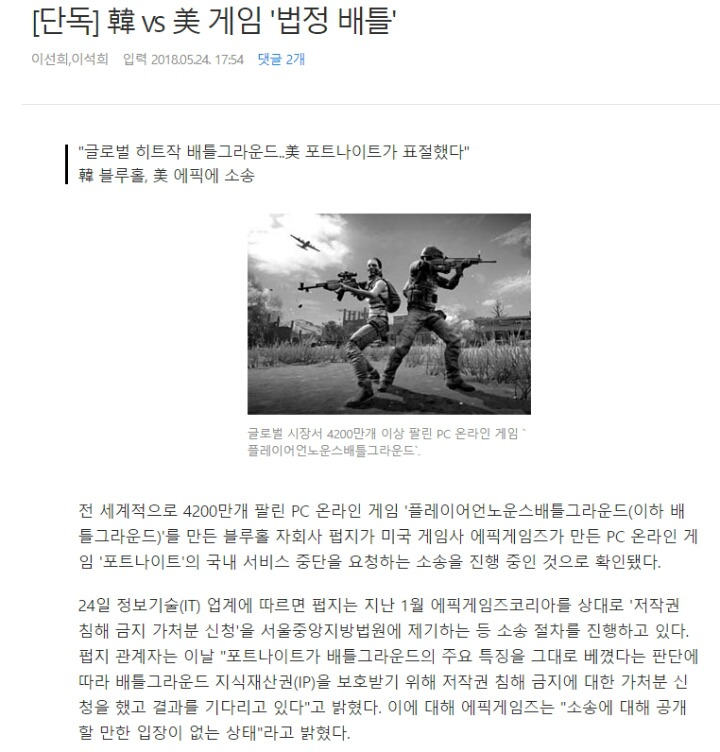 포트나이트 배틀로얄 출시 때 배틀로얄 장르는 문제될 것이 없다고 PUBG에서도 못박았으니까