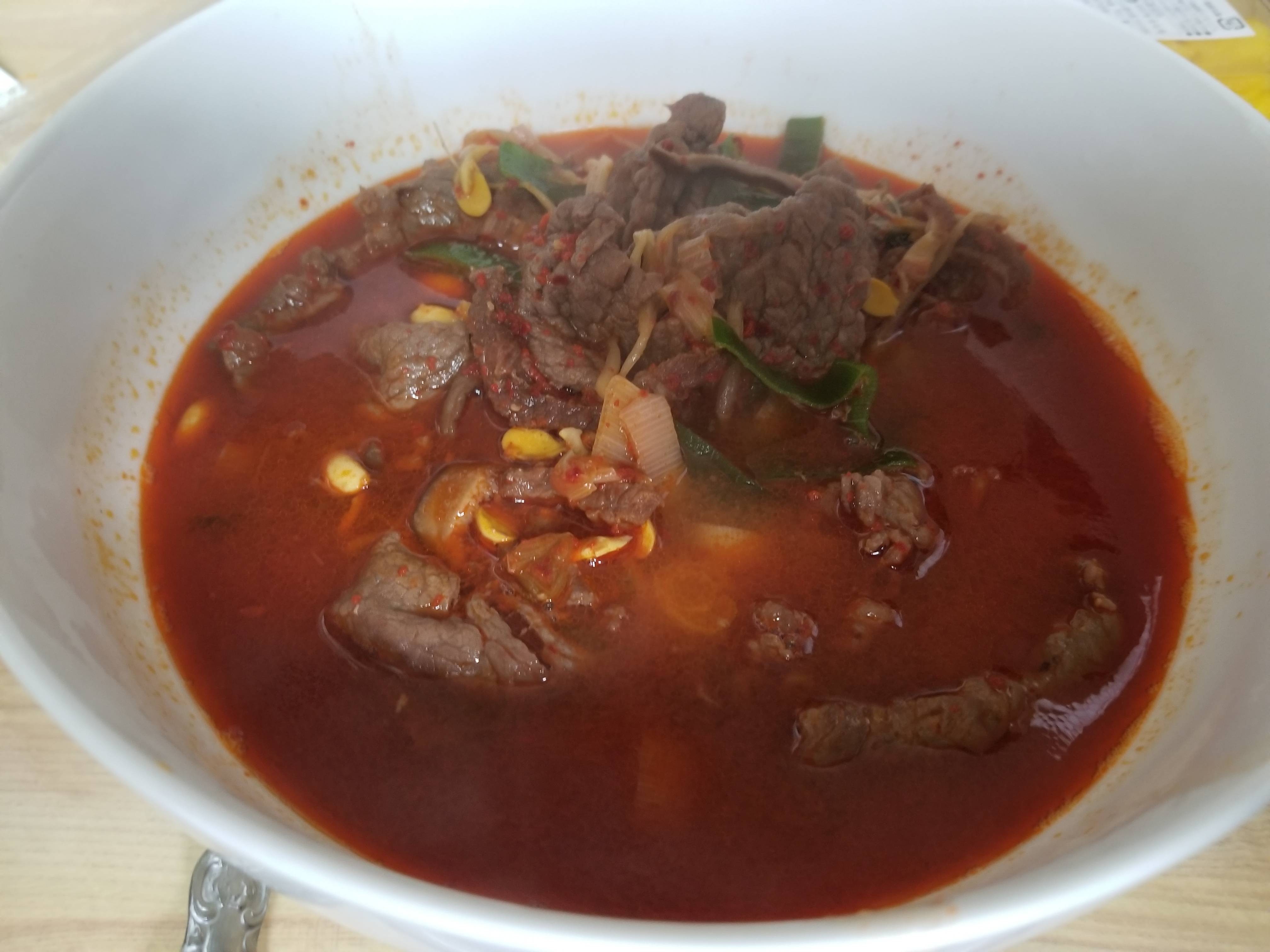 대충 한국 마트 가서 사골국물 팩으로 된거 사다가 콩나물 고춧가루 고추기름 소고기 버섯 등 냉장고에 남은 식재료 다 쳐넣고 끓여봤는데 생각보다 괜찮다