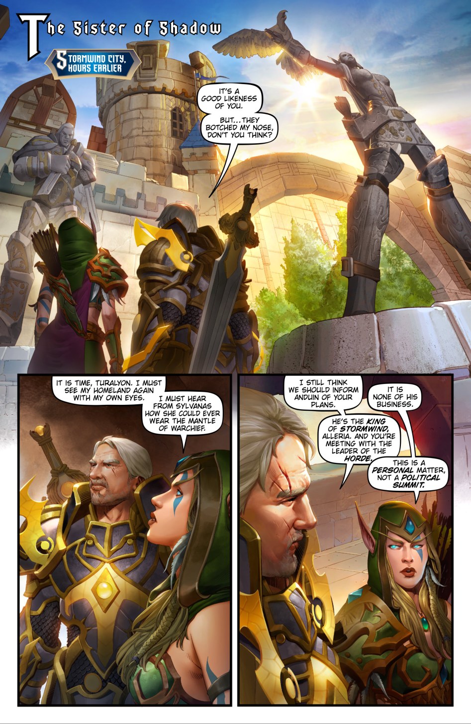 투랄리온: 나는 아직도 이 계획을 안두인에게 알려야 한다고 생각해. 알레리아, 그는 스톰윈드의 왕이야. 그리고 너는 지금 호드의 지도자를 만나려 하고 있어.