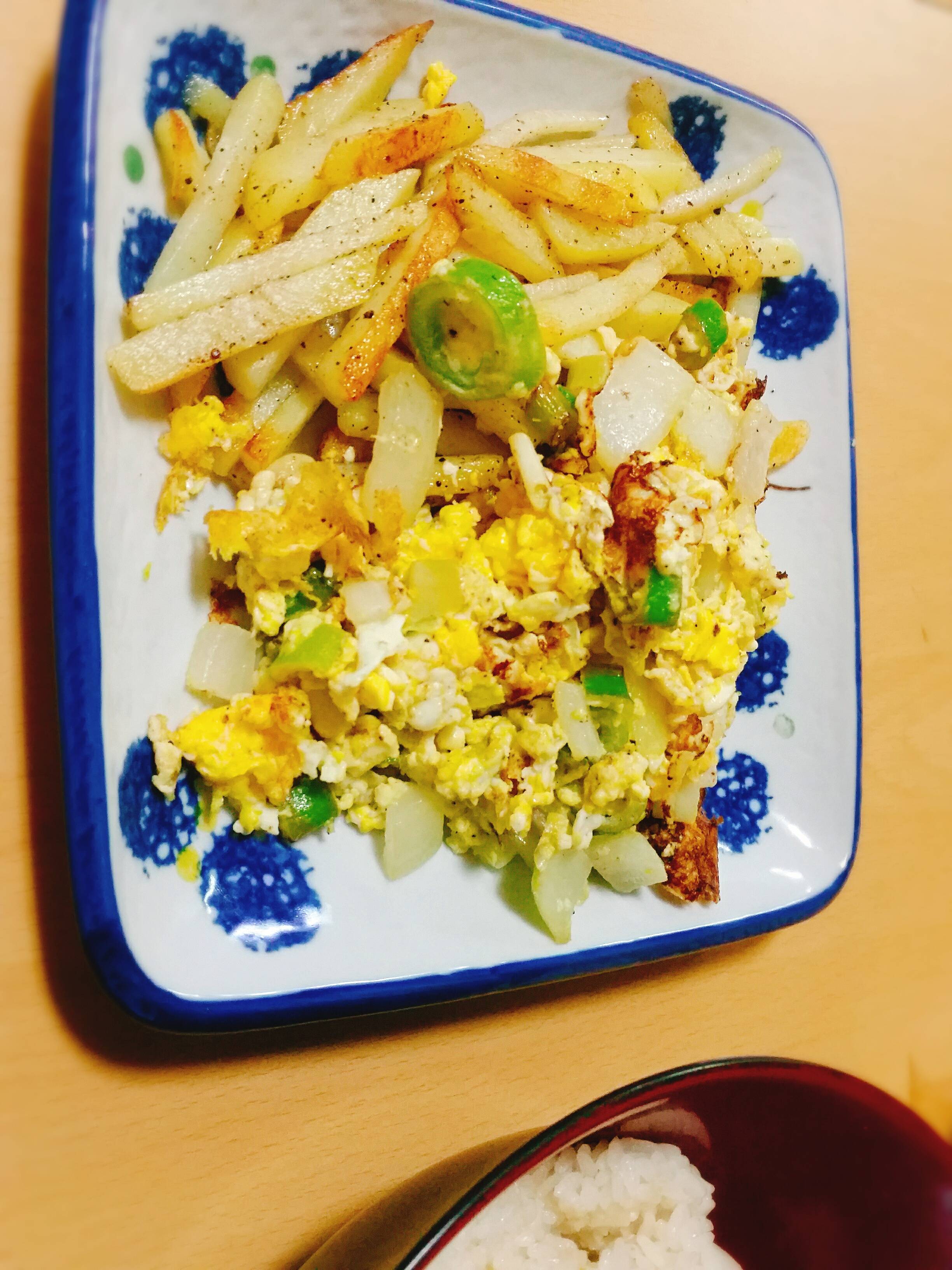 감자채볶음에 에그스크램블이야