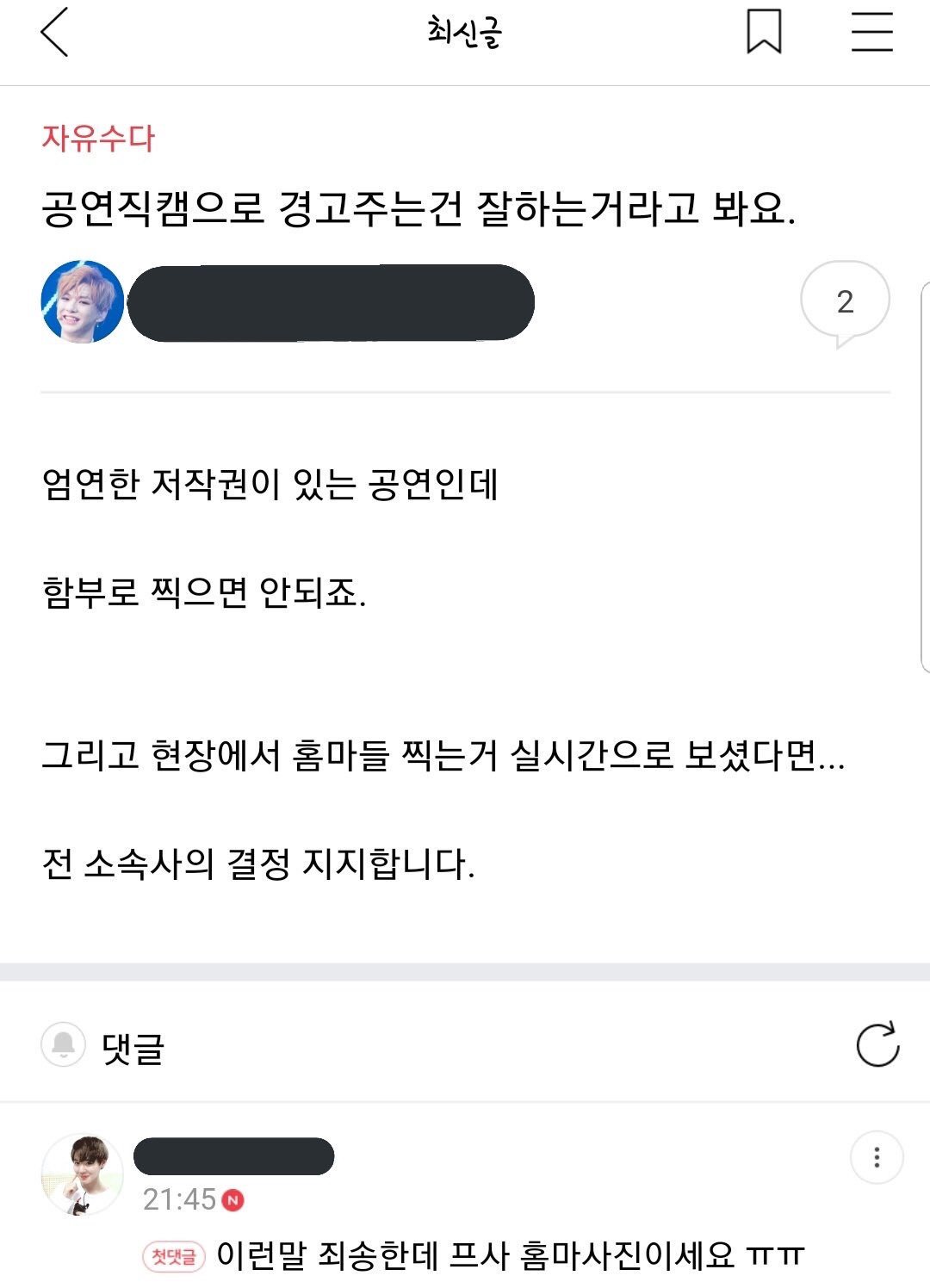 되었기 때문에 최소한 k팝 쪽에선 직캠 제한 안 함.