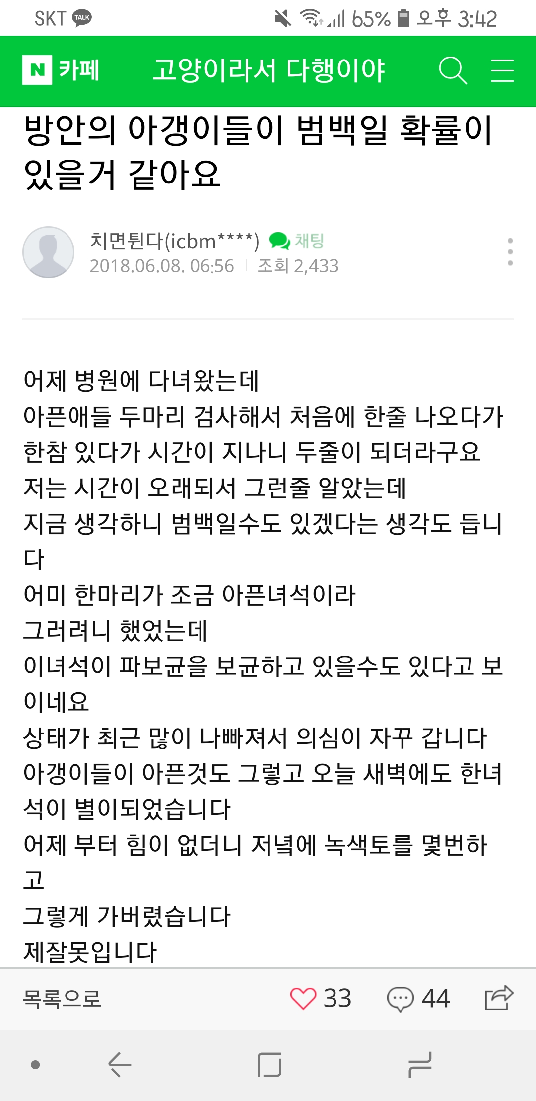 누가 일부러 죽인게 아니라 병 같다네