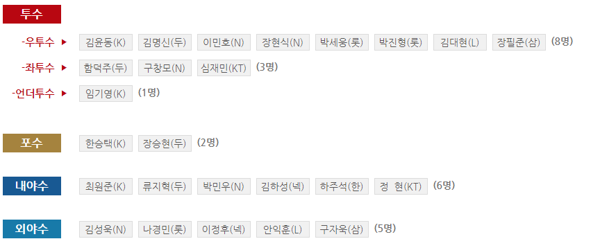 치킨은 미필이 김재영 하나였던듯 엔트리에..