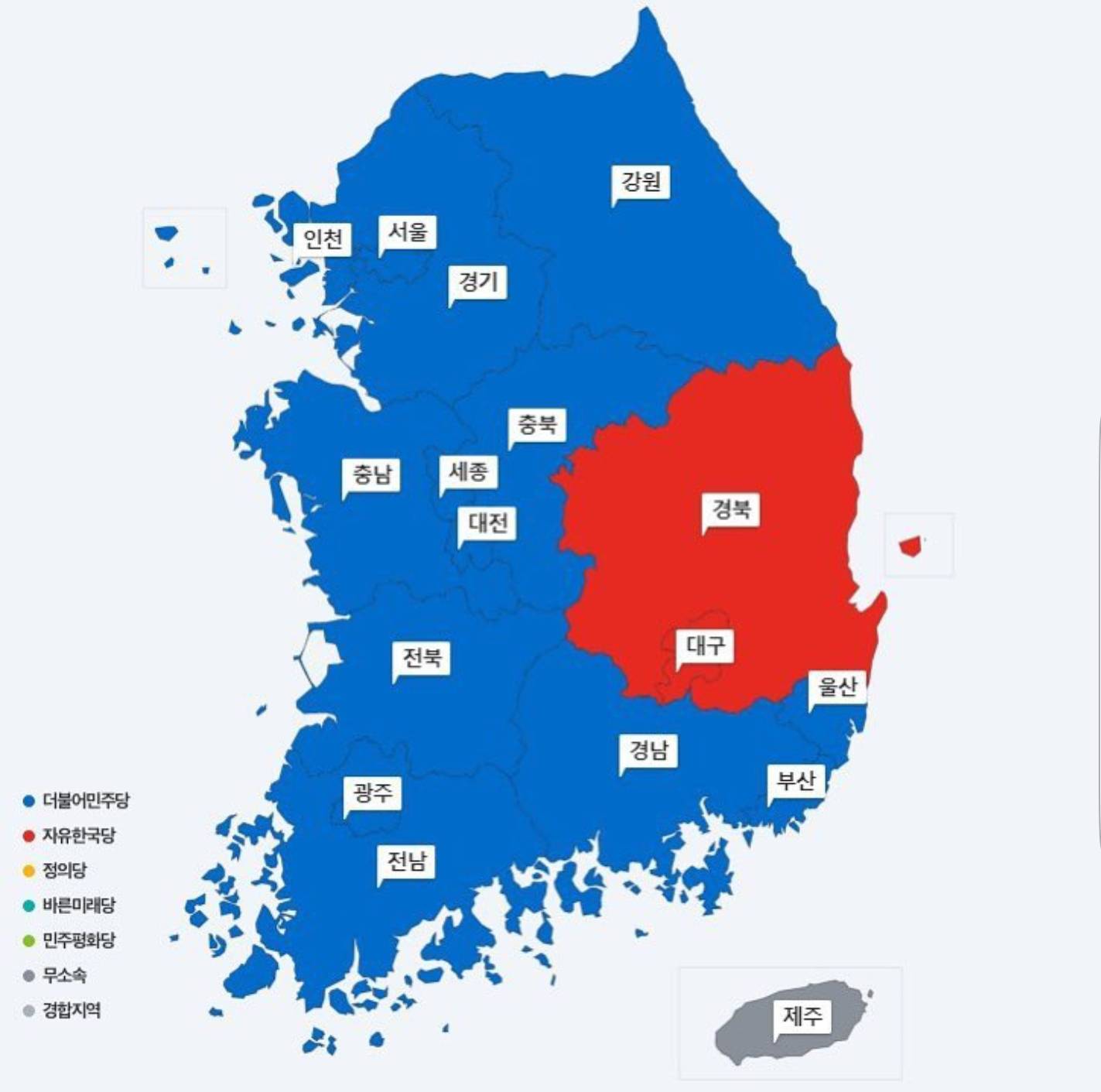 대구도 솔직히 김부겸 나왔으면 권영징 그냥 쳐발렸을듯. 임대윤은 동구청장 민선 초기에 했던 사람이긴한데 인지도에 솔직히 너무 딸렸는데도 53퍼 vs 40퍼 가량 먹고 졌으니. 권영진 찍어주는 틀딱들 고정표가 시발 너무 강력하다