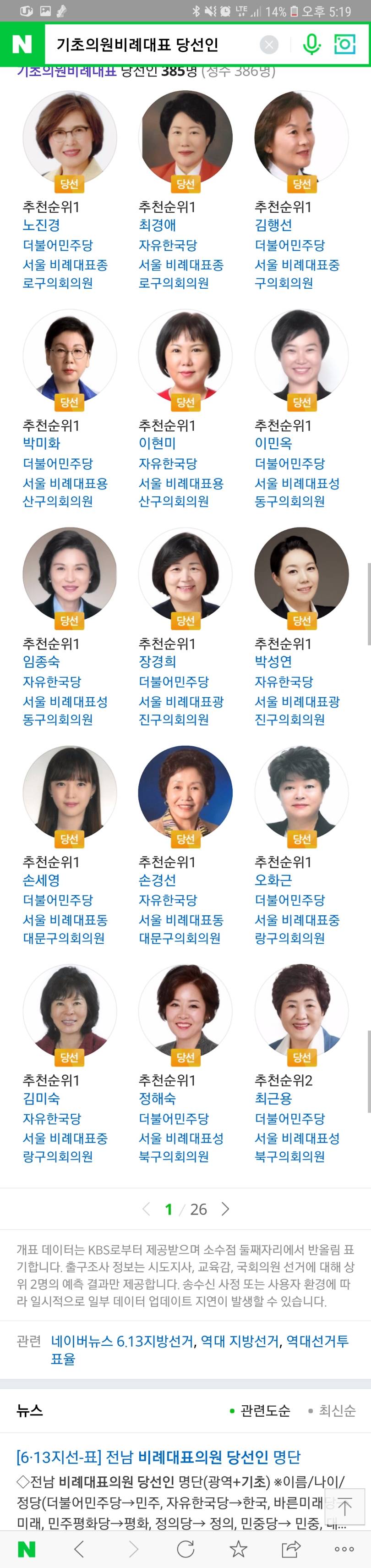 비례대표 특성상 대부분 추천1순위가 당선됨