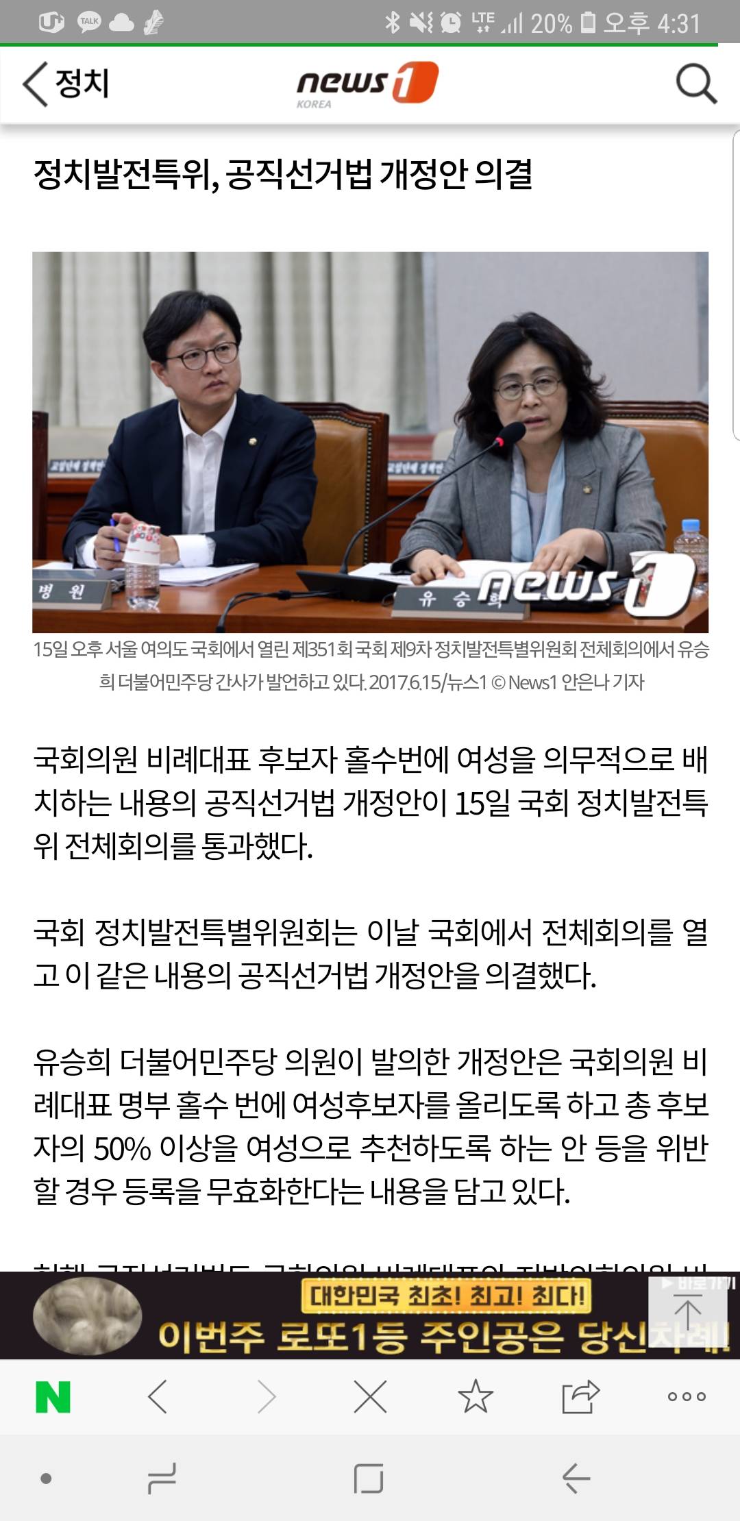 비례대표 추천 홀수번호 는 무조건 여성이어야 한다는 미친법을만듬