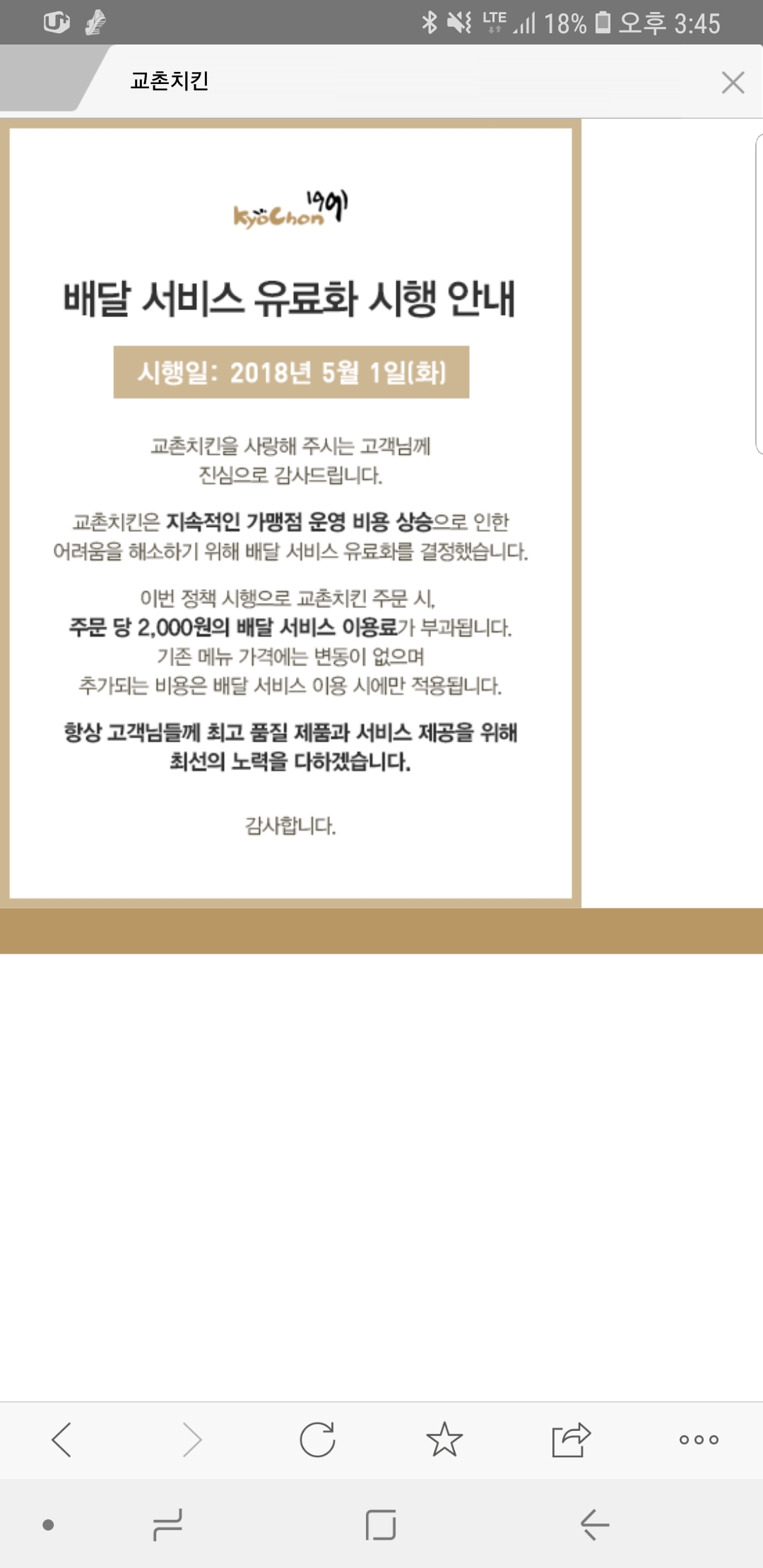 교촌레드땡기는데 배달비받으면 안먹을라궁