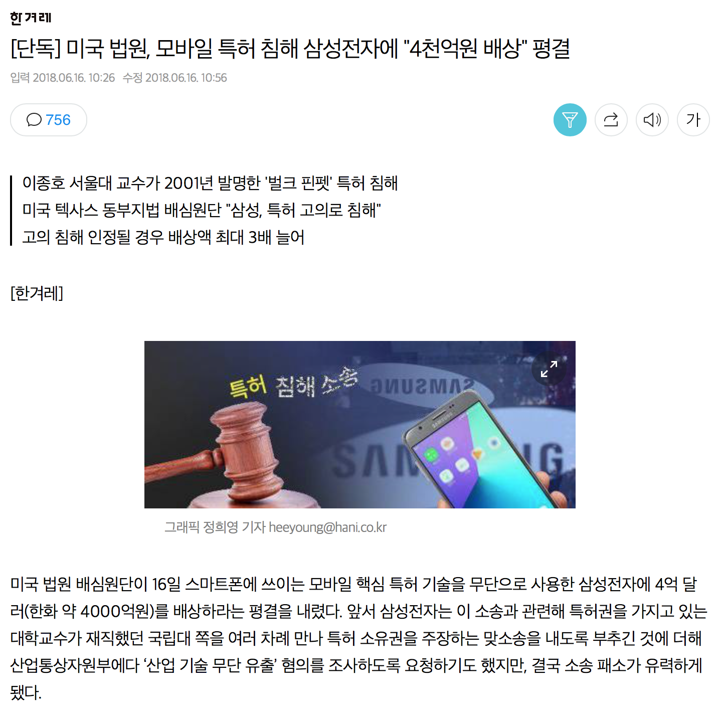 3) 삼성은 15년부터 이 특허를 사용했지만 사용료 내기 싫으니 미국 동부지법에서 고소 시전