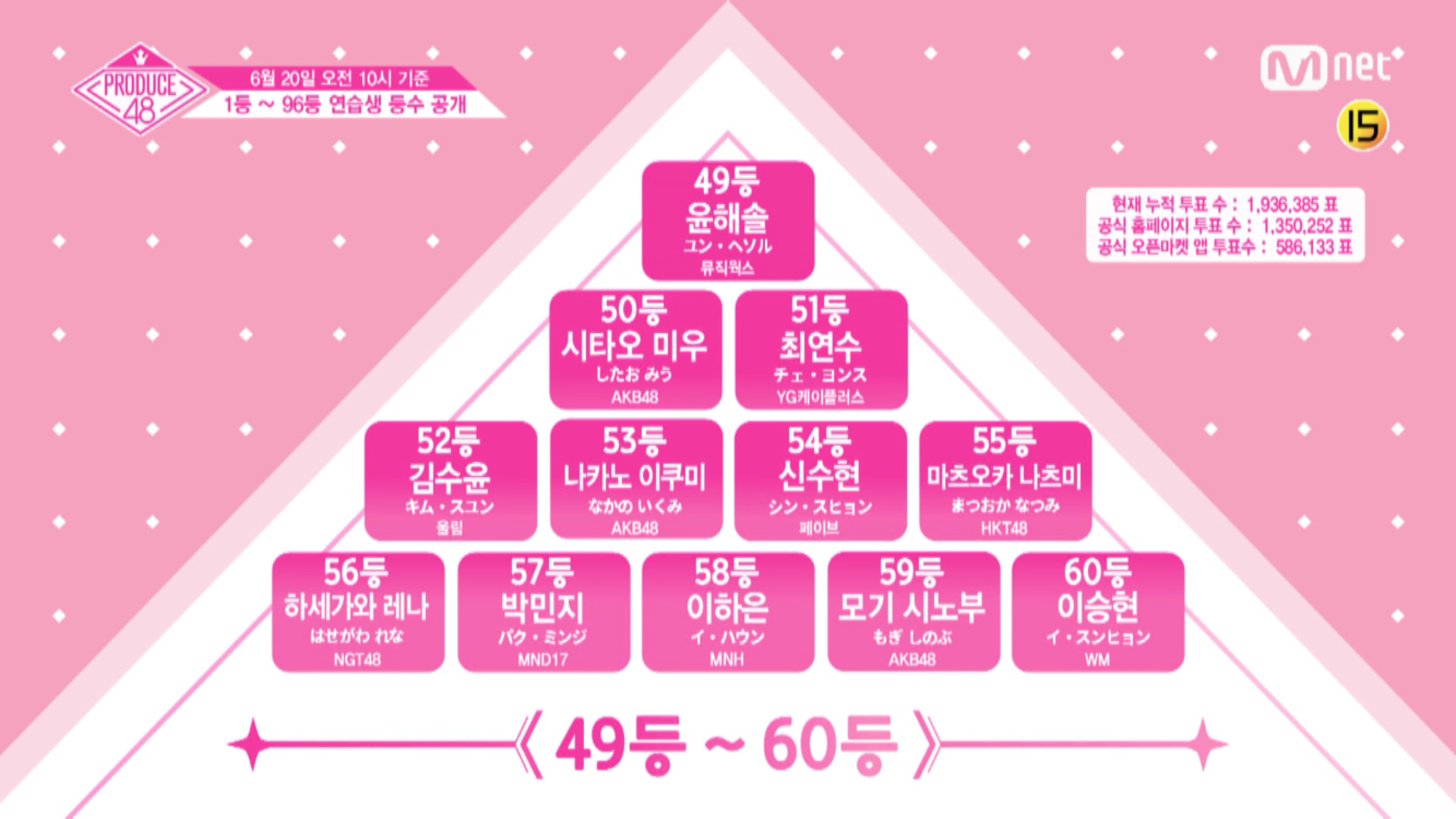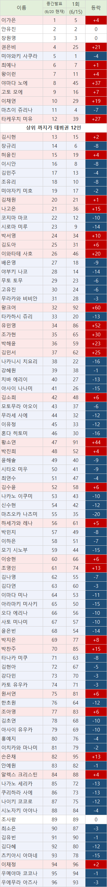 데뷔권 이하 순위는 코멘트 일단 생략.
