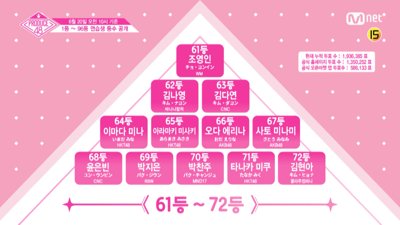 그에 반해 지난주 akb 총선 과정에서 잡음 일으키며 이미지 하락한 쥬리나와 거기에 머리채 잡힌 사쿠라는 순위 하락.