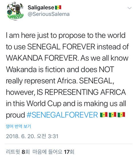 와칸다 포에버 대신 세네갈포에버를 해달라.