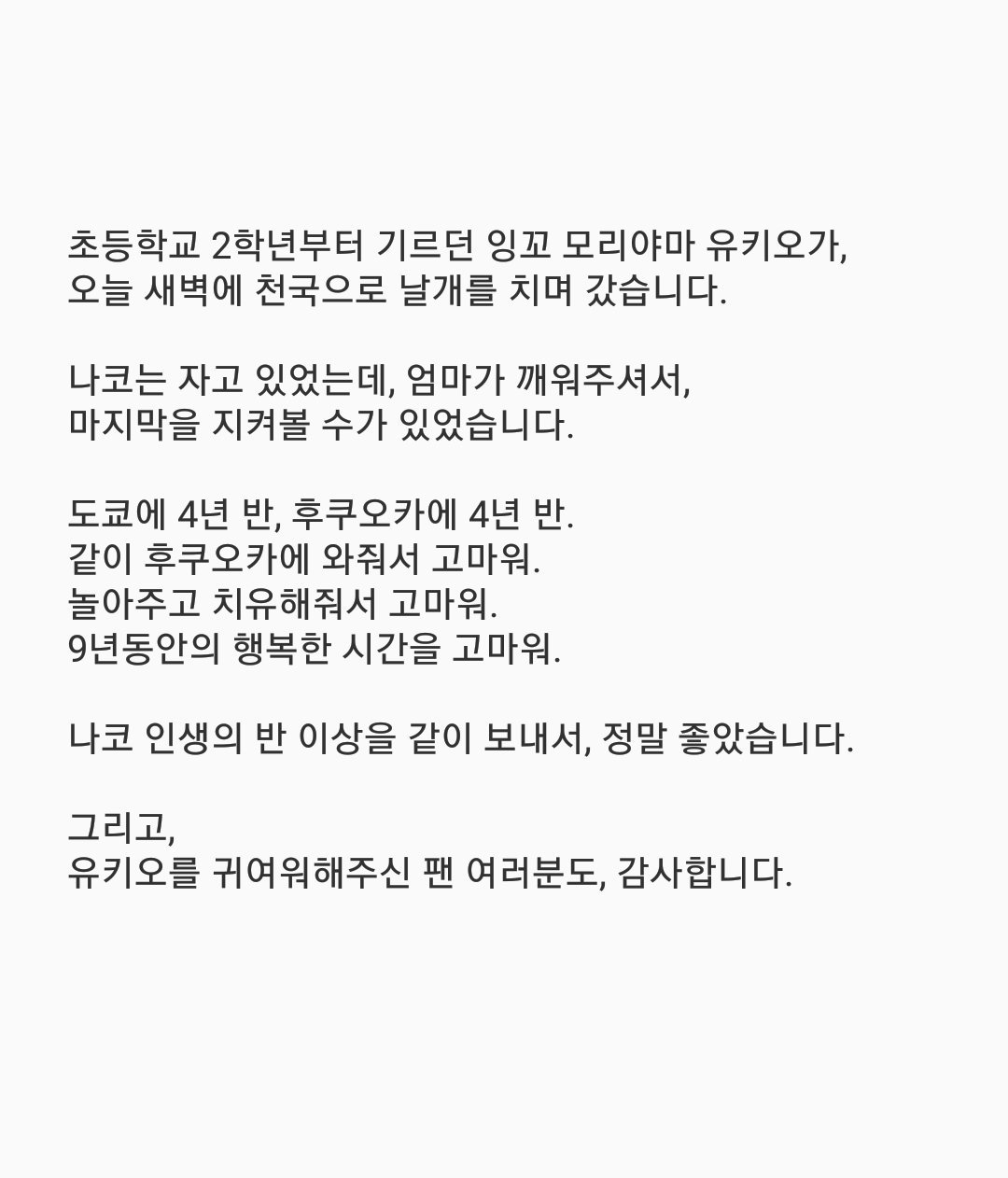 절대로 나을 거라고 믿고 내일부터의 일이나 악수회도 웃는 얼굴로 열심히 하겠습니다! 유키오 힘내!