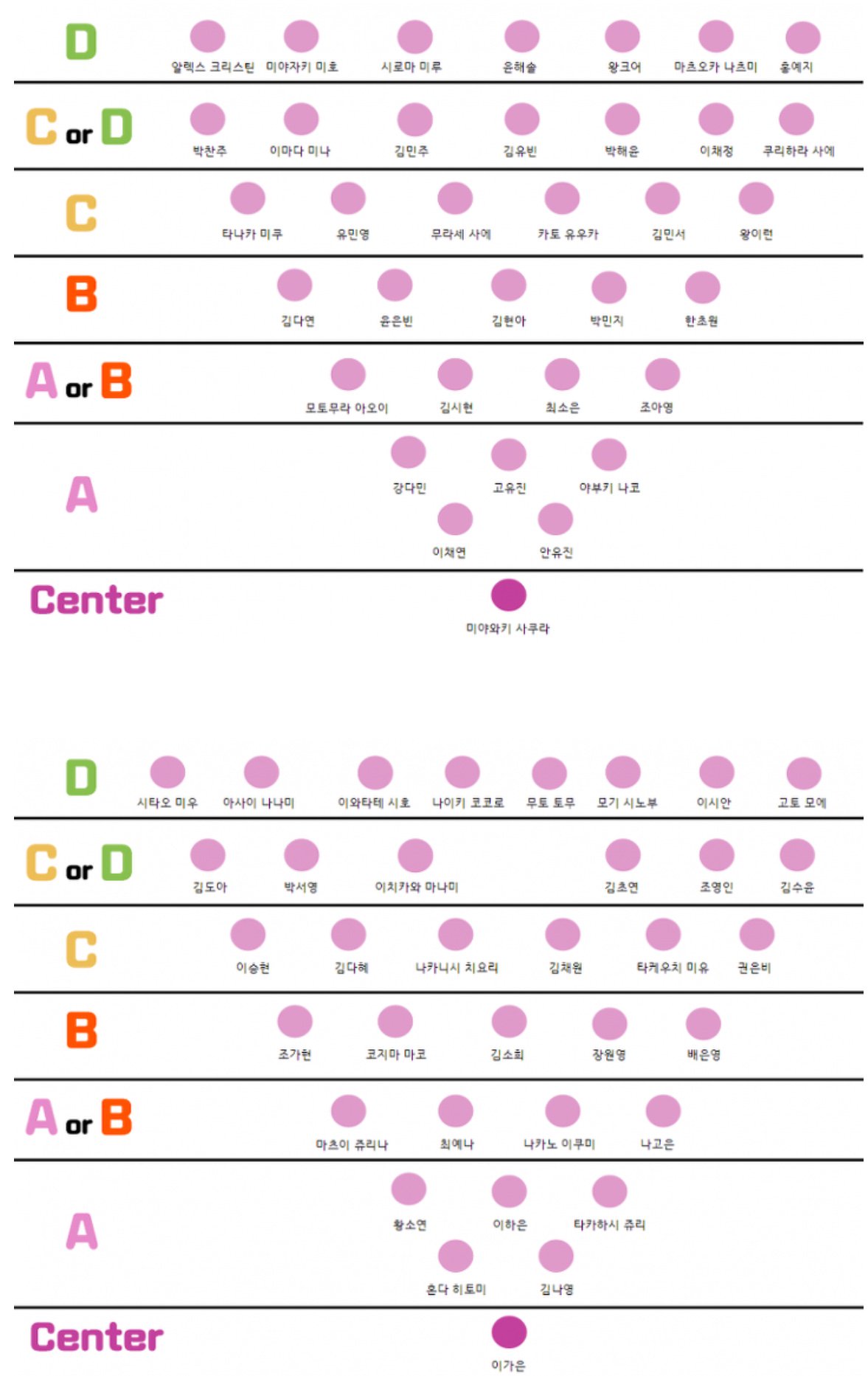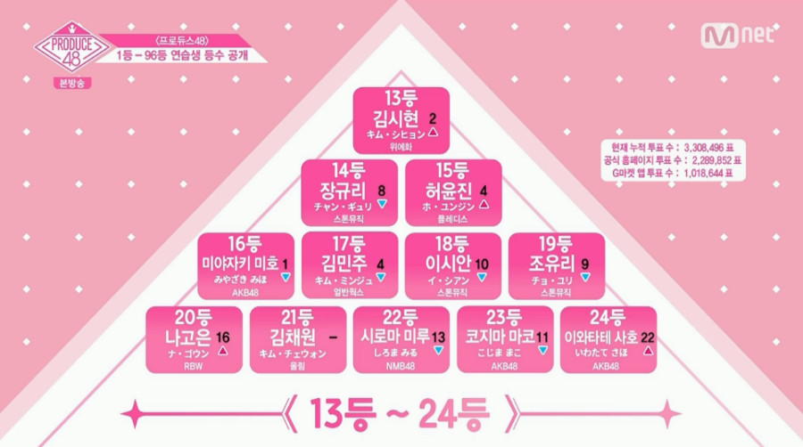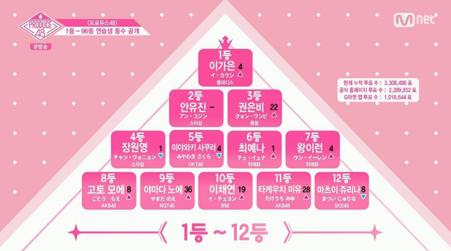 장원영-권은비, 야마다 노에-고토 모에, 마츠이 쥬리나-타케우치 미유 순위가 서로 바뀌었군.