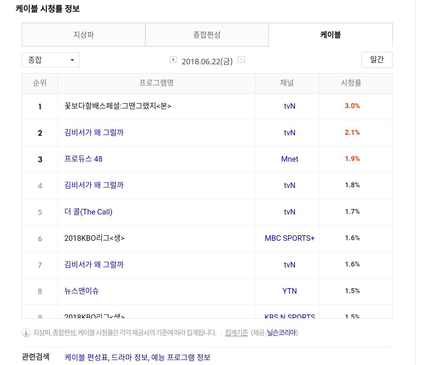 이번주 수요일에 나온 중간발표 순위와 비교하면. . .