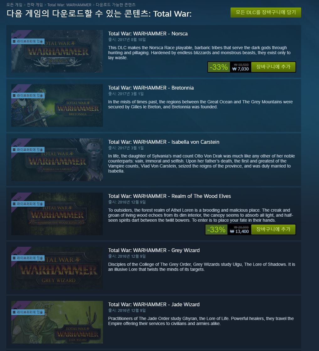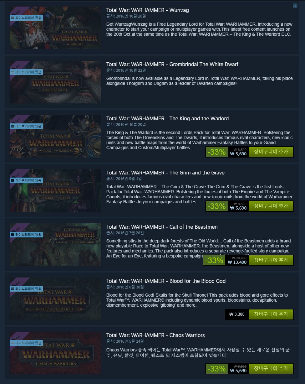 스팀 세일해서 워해머 토탈워 시리즈 다 모았다 후...