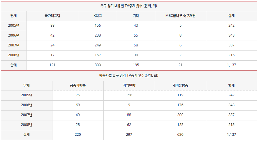 이건, 축구가 아무리 우리종목 잘 팔아보자고 해도 야구를 뛰어넘기 힘든 차이임.