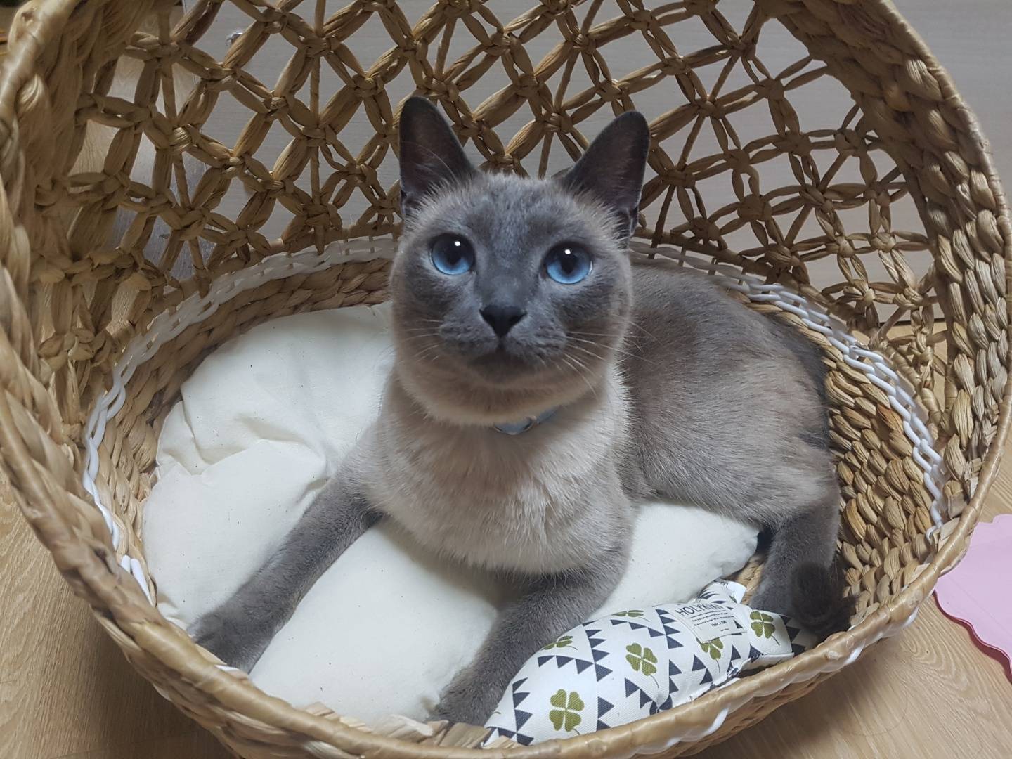 바구니 오뎅꼬치로 꼬셔다가 앉혀놨더니 편안한지 앉아있음