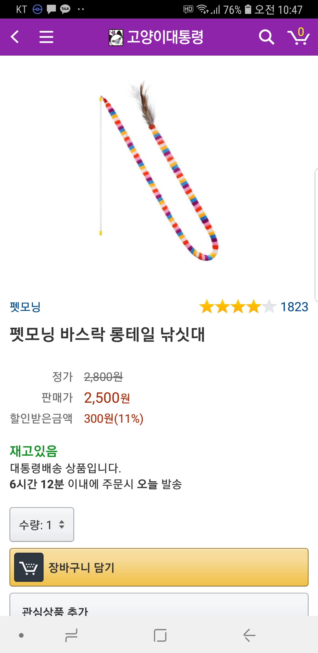 저 4카샤카샤와 각종 장난감을 샀지만 저게 젤 반응이 조아여.. ㅜㅜ 성묘라 그런가 다 시큰둥함