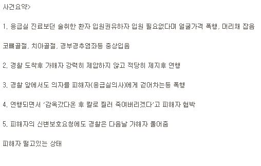 의사가 저항하면 쌍방폭행이라 저항도 못함 ㅋㅋㅋ 그냥 쳐맞고 있어야함