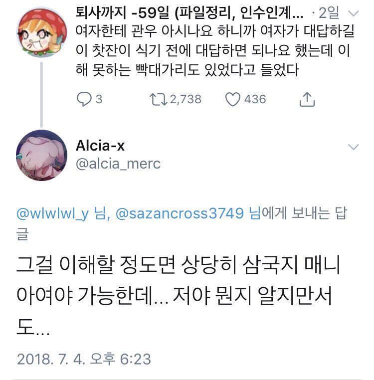 근데 관우 아냐고 질문 던진 남자가 여자의 그 드립을 이해 못했다고 하니까.
