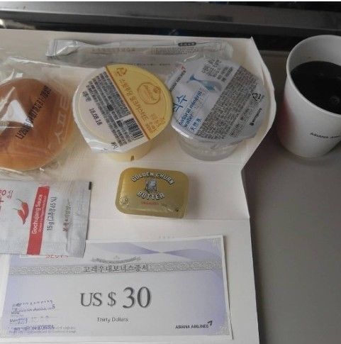 비지니스석 기내식을 빵으로 떼우려면 장발장이 훔친 빵 정도 줘야 밸런스가 맞을까 말까한데 달랑 세조각? 급한김에 스머프 마을 기내식으로 훔쳐온거야? 키딩?